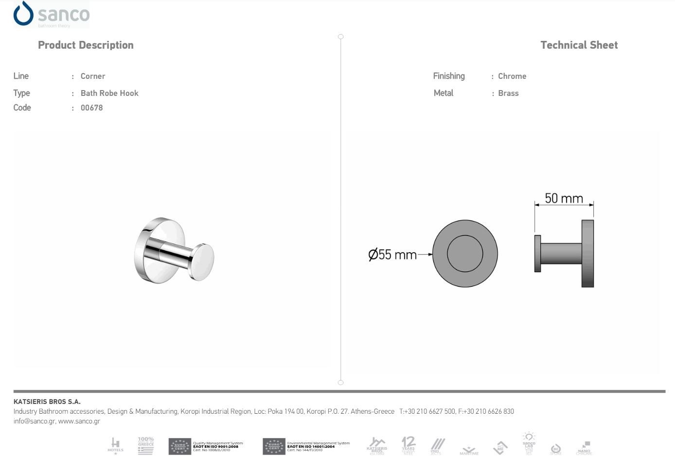Άγκιστρο Μονό Sanco Corner Antracite Grained 0678-M118 Άγκιστρο Μονό Sanco Corner Antracite Grained 0678-M118