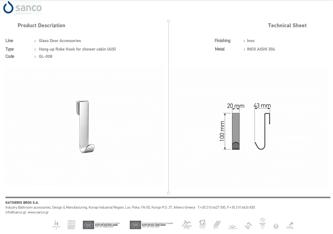 Διατίθεται σε φινίρισμα: Chrome, Graphite Dark, White Mat, Beige Mat, Black Mat, Anthracite Grained, Dark Bronze Mat, Gun Metal, Brushed Nickel, Brass Brushed, Brushed Gun Metal, Bronze Mat Old Copper Mat.