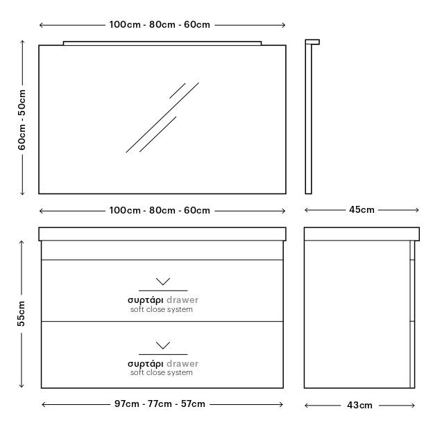 - Διαστάσεις Μ77 x Π45 x Υ55 cm