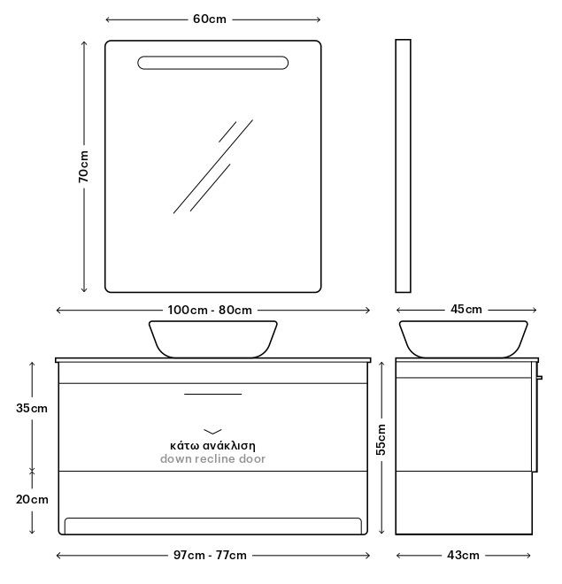 Έπιπλο Μπάνιου Σετ Βάση Μελαμίνη Μ77xΥ55xΒ45cm Πάγκος-Νιπτήρας-Καθρέπτης-Φωτιστικό Savvopoulos Luxury Puro-III-80