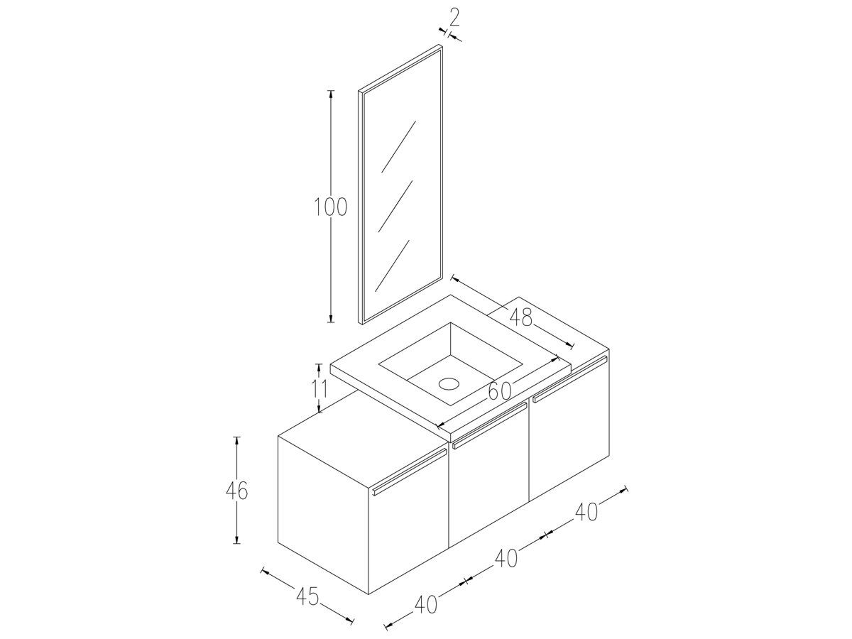 Σημείωση:   *Δυνατότητα επέκτασης του επίπλου προσθέτοντας ντουλάπι 40  ή 80 εκ.