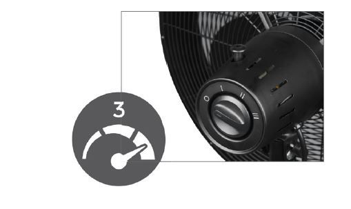 Switch, adjustable height, tiltable, oscillating, 3 modes of speed.