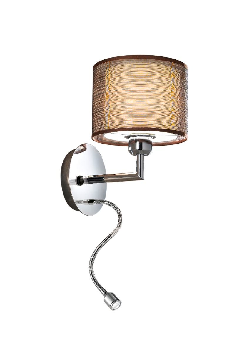 Απλίκα Επιτοίχια με Σποτ Διαβάσματος Αμπαζούρ Μέταλλο Χρωμέ-Καφέ Μπρονζέ 1xE27 & 1w Led Perenz Sirco 5977
