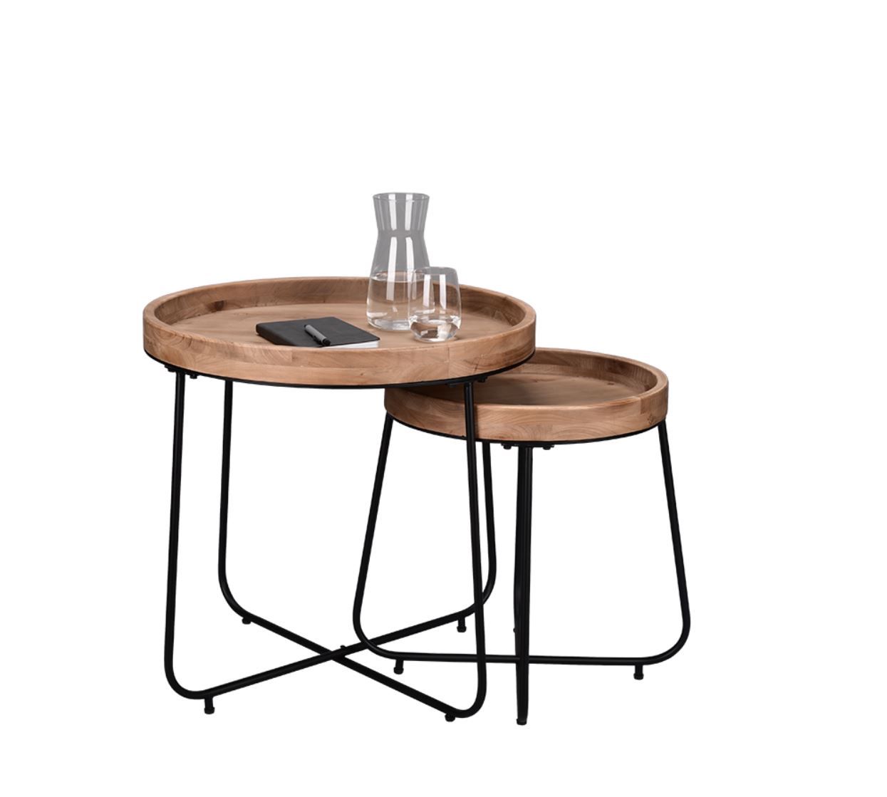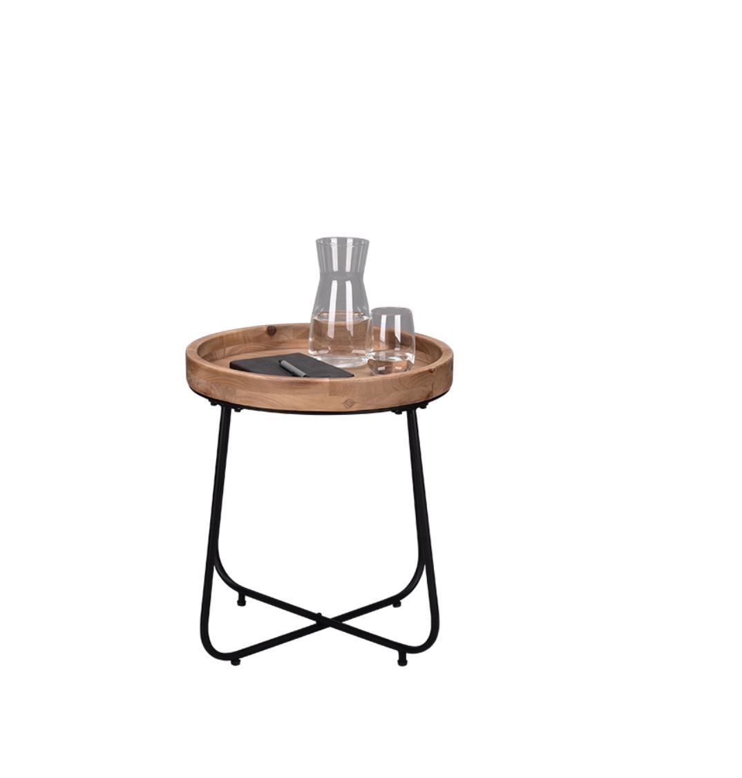 Βοηθητικό Τραπεζάκι Στρογγυλό Μέταλλο Μαύρο-Ξύλο Ø52xY48cm Mirrors & More Jil 2020130