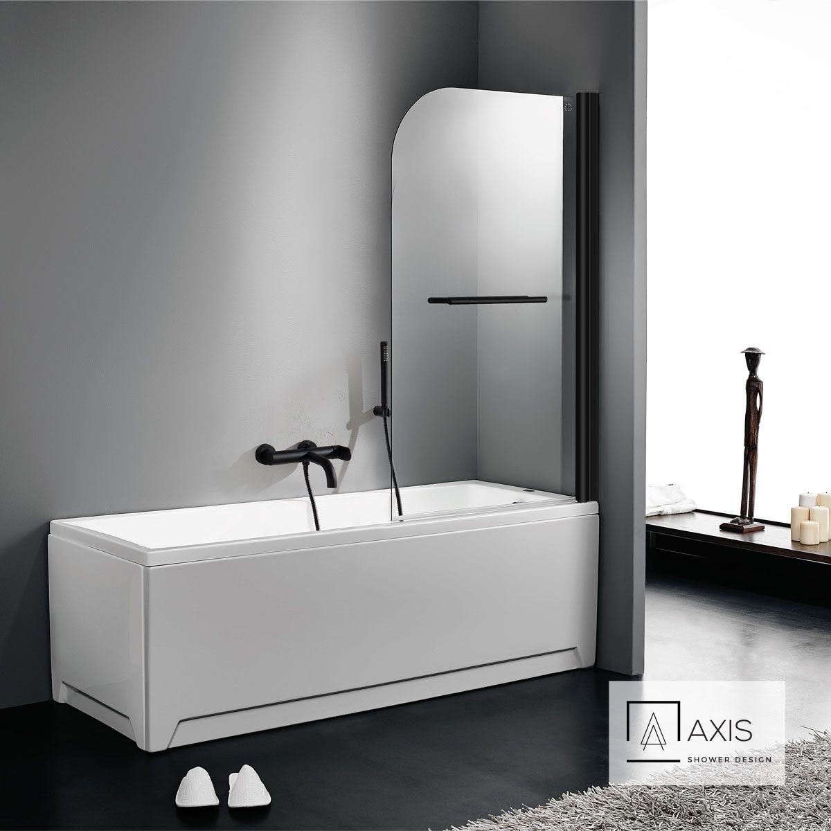 Διαχωριστικό μονόπτυχο μπανιέρας 85 εκ. ύψους 140εκ. με Πετσετοκρεμάστρα, AXIS Clear Black Matt XG850T-400