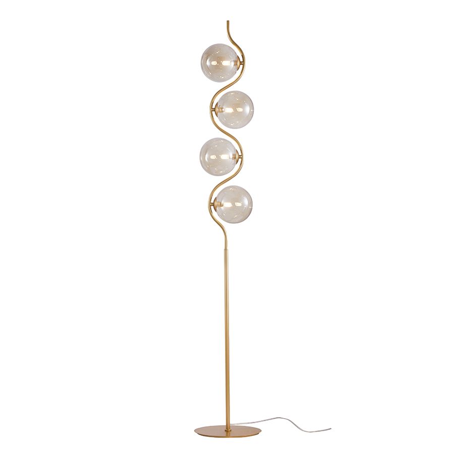 Τετράφωτο  επιδαπέδιο φωτιστικό κατασκευασμένο από χειροποίητο γυαλί cognac και μεταλλικό σκελετό σε χρυσό χρώμα.