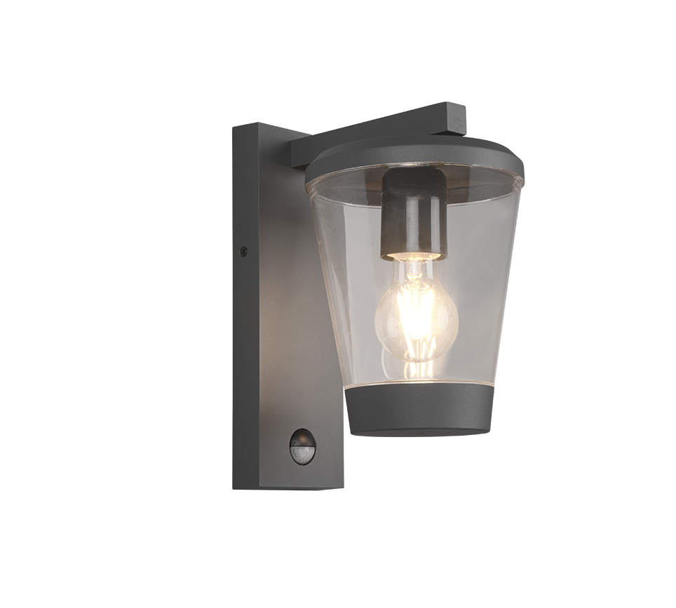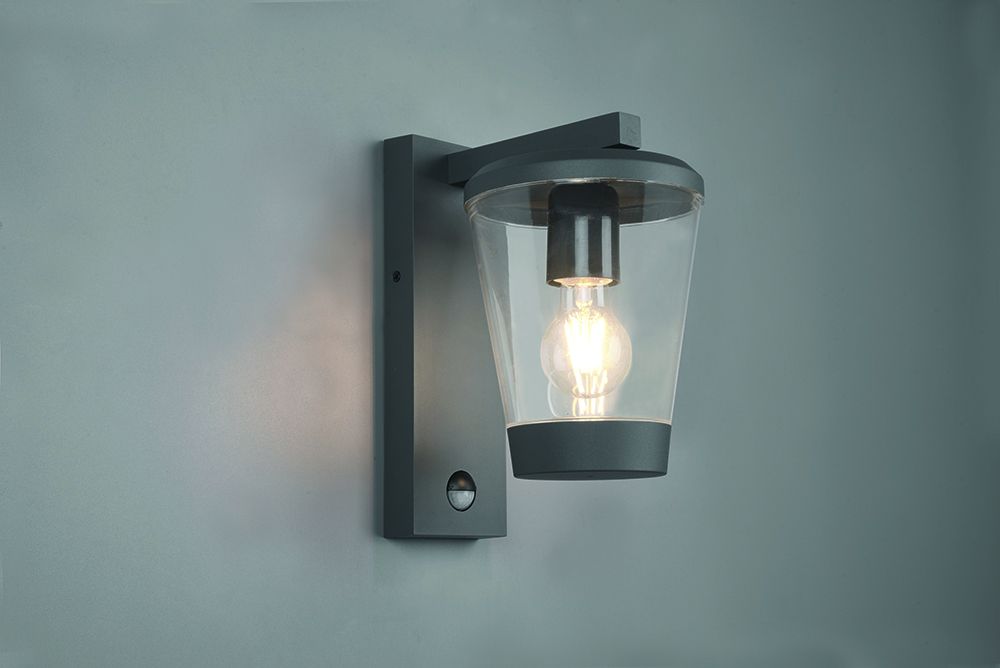 Επιτοίχιο Φαναράκι Ανθρακί με Αισθητήρα Κίνησης 16xH28cm 1xE27 Εξ.Χώρου IP44 Trio Lighting Cavado 211069142