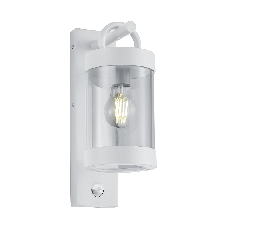 Exceptional and functional luminaire design. The wall lamp SAMBESI will be an eye-catcher on your outdoor facade with a traditional and yet modern lamp design. When the luminaire is switched on, the light is pleasantly emitted to the outdoor area and provides a decorative lighting ambience. The integrated motion sensor ensures more safety around the house in the dark, because built-in sensors automatically switch the light on and off again when there is movement in the immediate vicinity. Thanks to the weather-resistant die-cast aluminium and the IP44 protection rating, the wall light is ideal for lighting your outdoor area. The simple design in white matt in combination with a transparent glass shade sets elegant and modern accents. For energy-saving lighting, it is recommended to use an LED illuminant. These are an optimal alternative to conventional halogen lamps and stand for a high quality of light and energy savings of up to 80%. In addition, LED lamps help you benefit from a long service life, low heat generation and at the same time protect the environment.