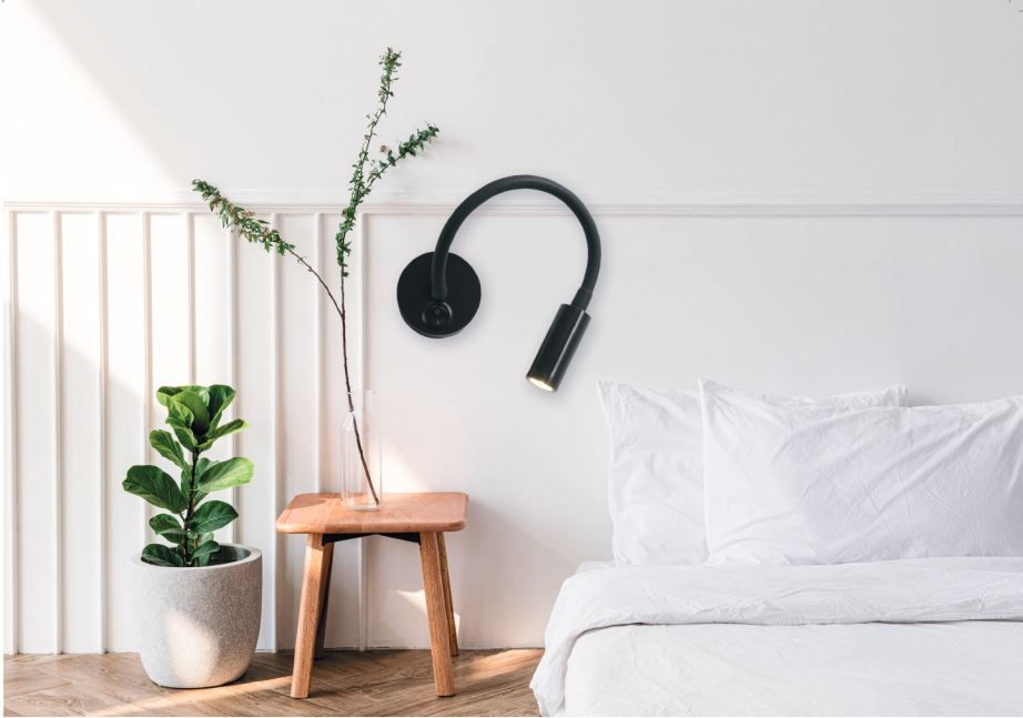 Πρόκειται για ένα λευκό επιτοίχιο φωτιστικό ιδανικό για διάβασμα.