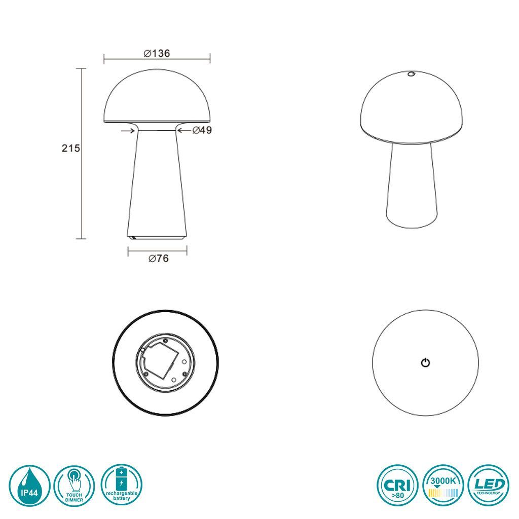 Επιτραπέζιο Φωτιστικό Επαναφορτιζόμενο Ø13xH21cm IP44 Led 2w 3000K 180lm Pistachio Green Trio RL Lennon R52176149