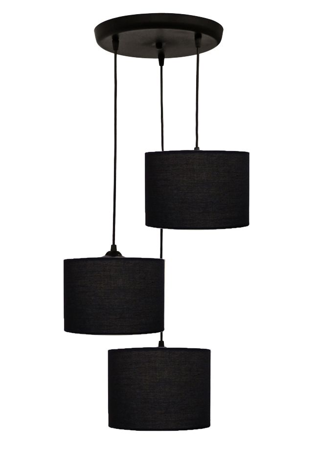 Φωτιστικό μοντέρνο οροφής 3φωτο ΗΚ-03 PENDEL 3L ΜΑΥΡΟ-BL / BLACK-ΒL Τεχνικά χαρακτηριστικά σκελετός πλαστικός με καλώδια / καπέλο ύφασμα Χρώμα Μαύρο / black H85 x Φ35cm 3 x E/27