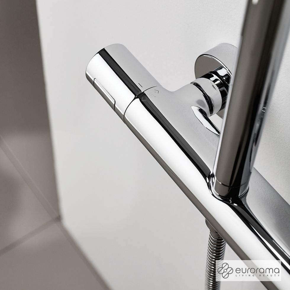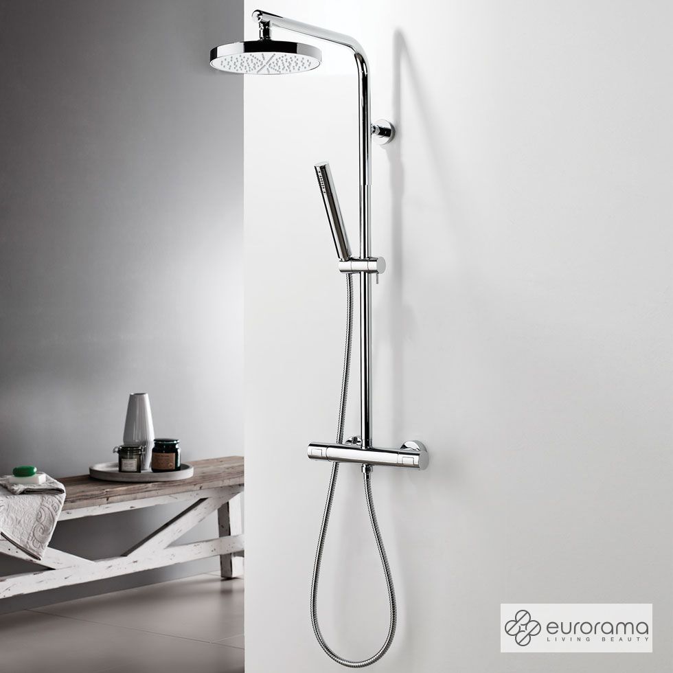 ΘερμοστατικήΜπαταρία Ντουζιέρας με Κεφαλή και Κολώνα μη ρυθμιζόμενου ύψους Thermo Round Eurorama Chrome 615066-100
