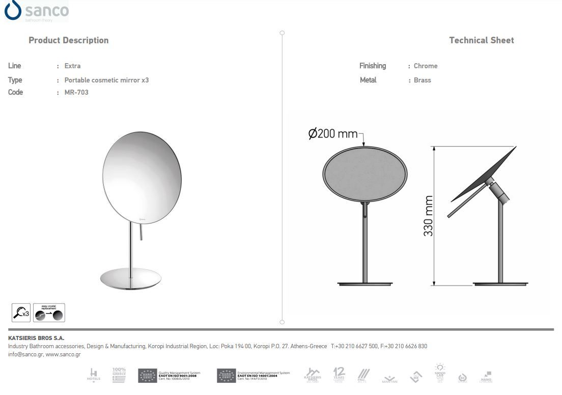 Καθρέπτης Μεγεθυντικός Επικαθήμενος Ø20 εκ. x3 Gun Metal Sanco Cosmetic Mirrors MR-703-A23