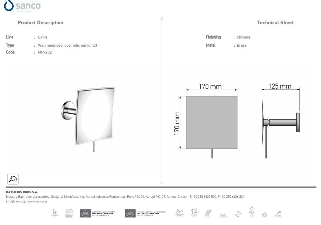 Καθρέπτης Μεγεθυντικός Επτοίχιος Μεγέθυνση x3 Brushed Gun Metal Sanco Cosmetic Mirrors MR-202-AB23Ειδική Τιμή 175,50 € Κανονική τιμή 195,00 € -