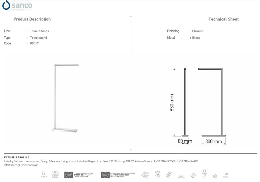 Καλόγερος Πετσετοκρεμάστρα W80xD300*H830 mm Επιδαπέδιος Black Mat Sanco Stands 0517-M116