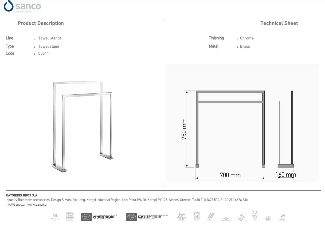 Καλόγερος-Πετσετοκρεμάστρες Επιδαπέδιος Sanco Extra Comfort Bronze Matt 0511-M25
