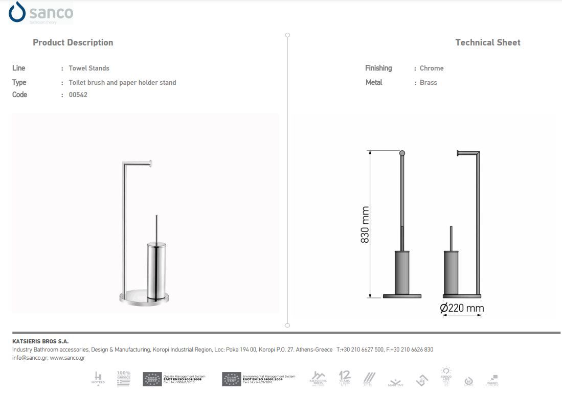 Καλόγερος W220xD190*H830 mm με Πιγκάλ-Χαρτοθήκη Επιδαπέδιος White Mat Sanco Stands 0544-M101