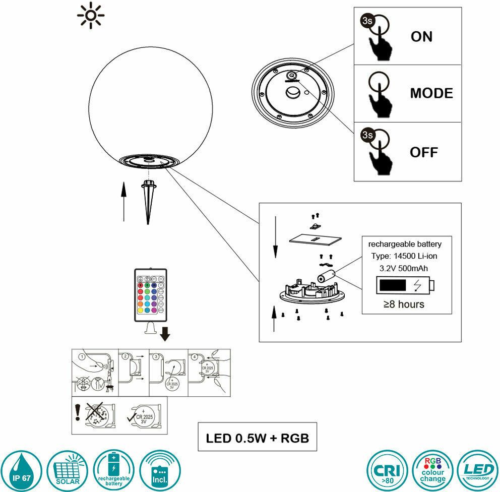 The MELO round solar light provides an atmospheric ambiance and inviting light accents around the house thanks to the integrated RGBW color changer.