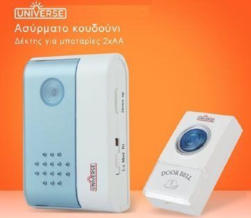 Universe V004A Κουδούνι Ασύρματο ηλεκτρονικό με δέκτη μπαταρίας (2*ΑΑ) & Μπουτόν, IP44.