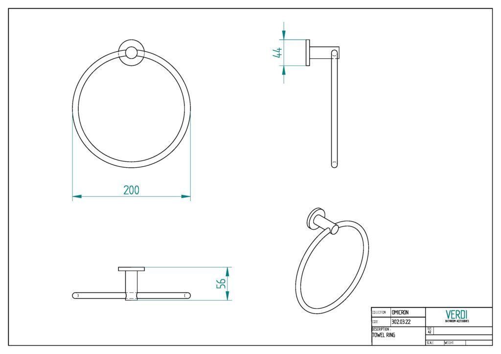 Κρίκος Στρόγγυλος Μπάνιου W200 x D57 x H215mm Gun Metal Gloss Verdi Omicron 3020350