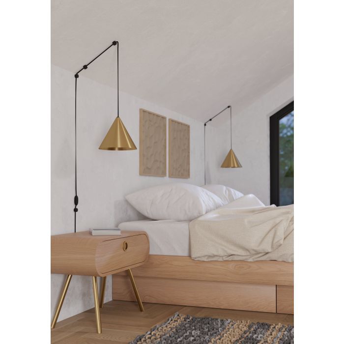 Κρεμαστό Φωτιστικό-Απλίκα με Μπουτόν On-Off Μονόφωτο 1xE27 Μαύρο-Βουρτσιστός Ορείχαλκος Eglo Narices 900975
