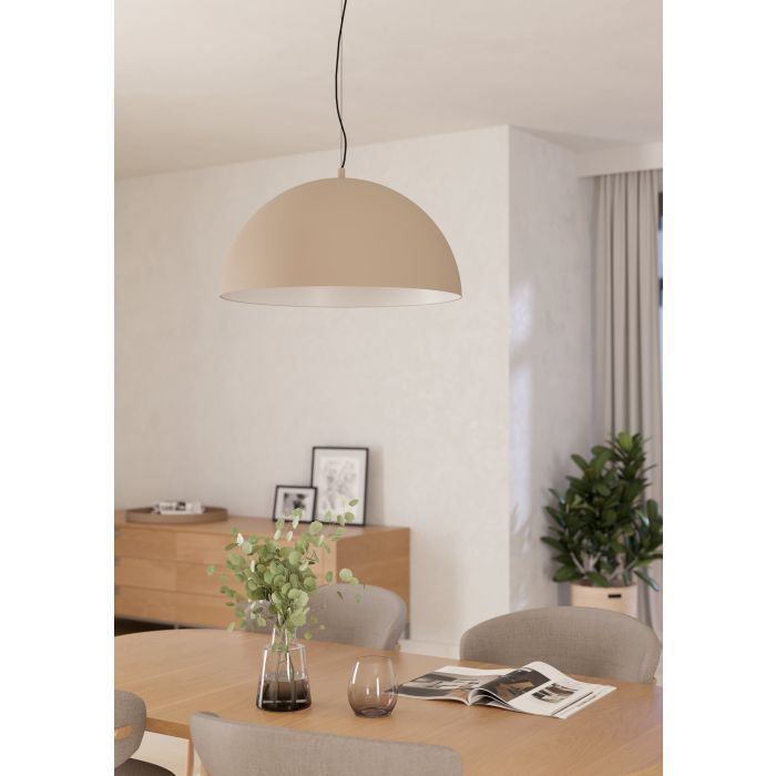 Μονόφωτο κρεμαστό φωτιστικό από την εταιρεία Eglo σε μπεζ χρώμα, με υποδοχή για έναν λαμπτήρα και ντουί E27.