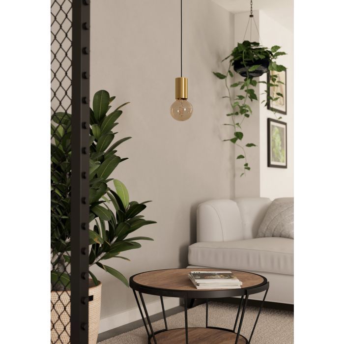 Μονόφωτο κρεμαστό φωτιστικό από την εταιρεία Eglo σε χρυσό χρώμα, με υποδοχή για έναν λαμπτήρα και ντουί E27.