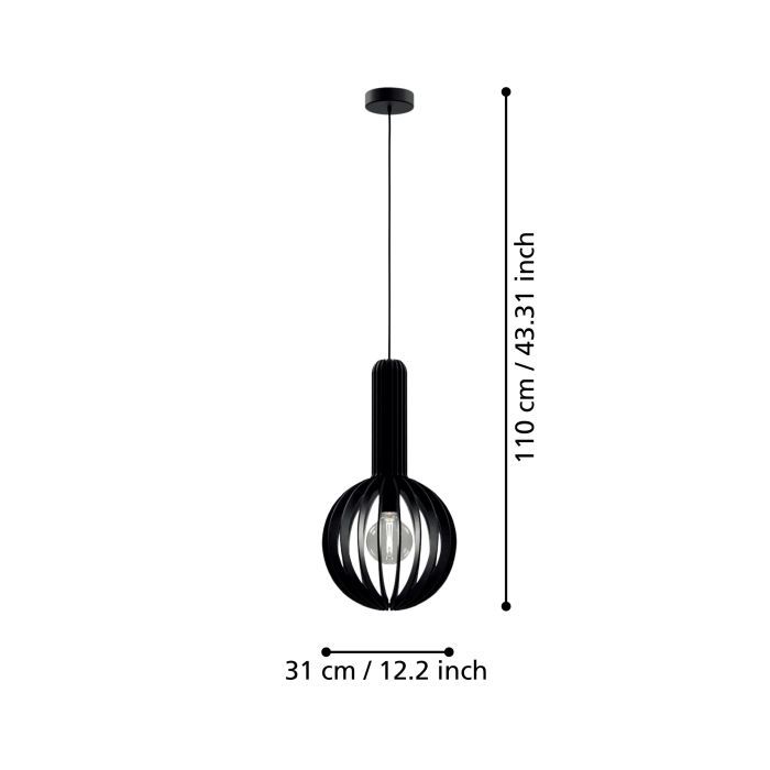 Μονόφωτο κρεμαστό φωτιστικό από την εταιρεία Eglo σε μαύρο χρώμα, με υποδοχή για έναν λαμπτήρα και ντουί E27.