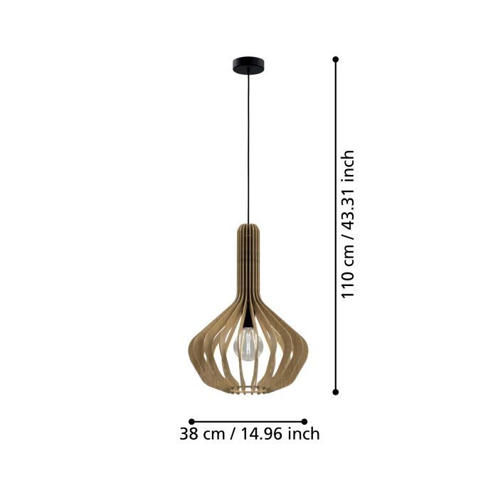 Κρεμαστό Φωτιστικό Μονόφωτο 38x110cm 1xE27 Ξύλο-Ατσάλι Καφέ Eglo Velasco 900152