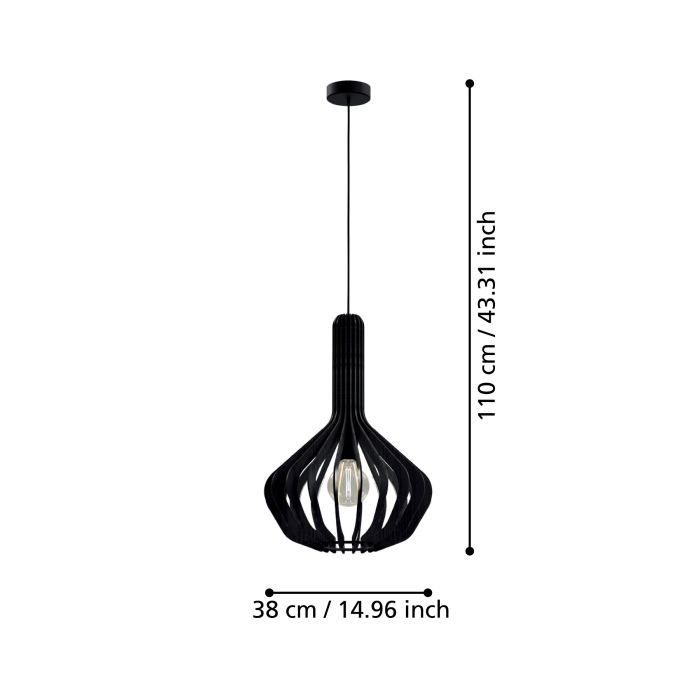 Κρεμαστό Φωτιστικό Μονόφωτο 38x110cm 1xE27 Ξύλο-Ατσάλι Μαύρο Eglo Velasco 900154