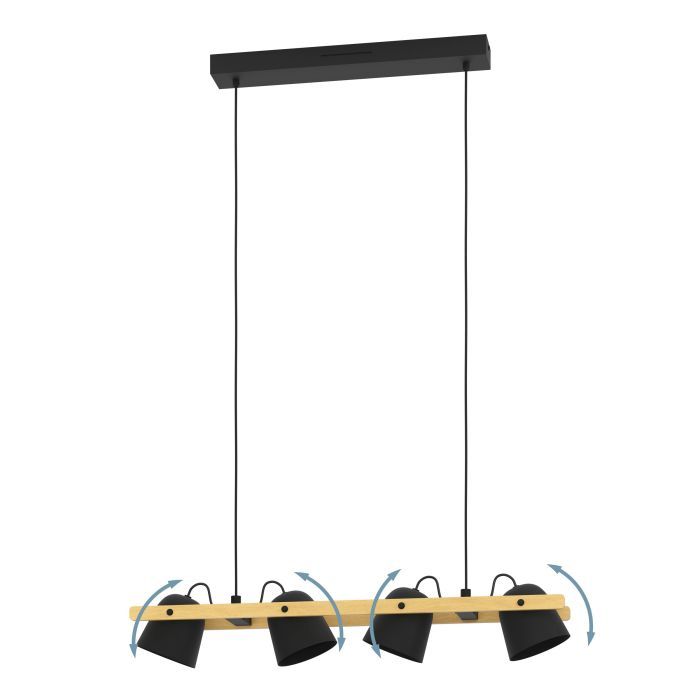 Κρεμαστό Φωτιστικό Ράγα Εφαρμογή-Τηλεχειριστήριο L78xH118cm Μαύρο-Ξύλο Led 2700-6500K 550lm Eglo Hornwood-Z 900883