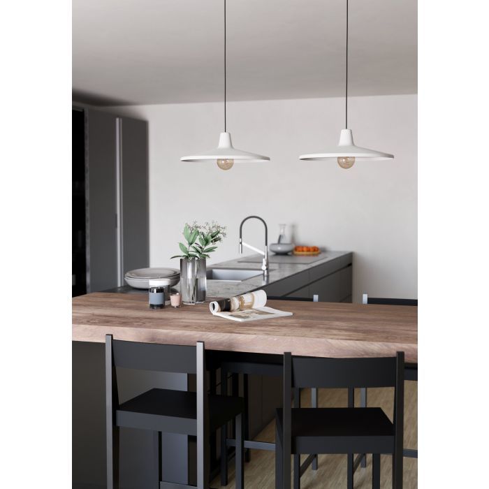 Δίφωτο κρεμαστό φωτιστικό από την εταιρεία Eglo σε μαύρο χρώμα, με υποδοχές για 2 λαμπτήρες και ντουί E27. Είναι κατασκευασμένο από μέταλλο, ένα υλικό δημοφιλή στα κρεμαστά φωτιστικά οροφής, καθώς πέρα από τη μοντέρνα νότα που προσφέρει, είναι ιδιαίτερα ανθεκτικό στον χρόνο. Καθαρίζεται εύκολα με ένα πανί.