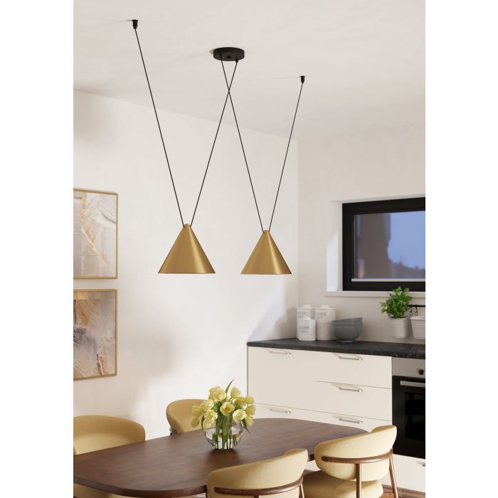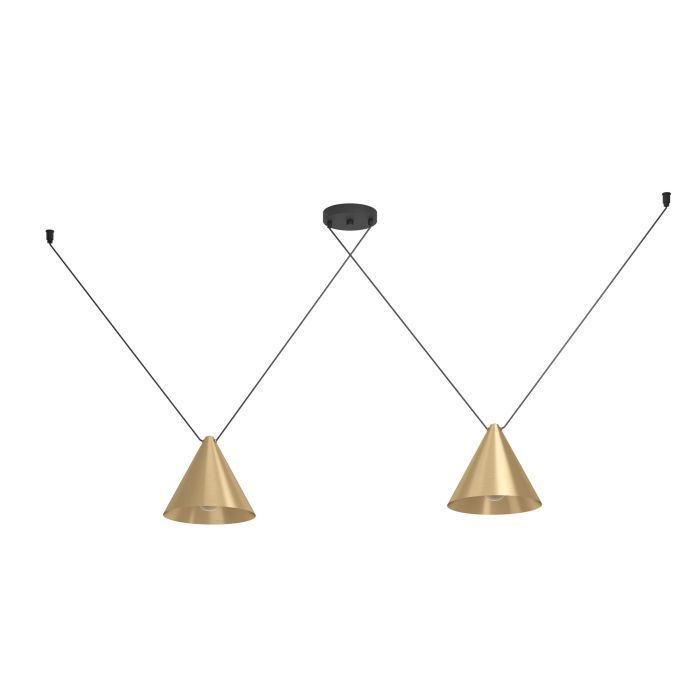 Δίφωτο κρεμαστό φωτιστικό από την εταιρεία Eglo σε μαύρο χρώμα, με υποδοχές για 2 λαμπτήρες και ντουί E27. Είναι κατασκευασμένο από μέταλλο, ένα υλικό δημοφιλή στα κρεμαστά φωτιστικά οροφής, καθώς πέρα από τη μοντέρνα νότα που προσφέρει, είναι ιδιαίτερα ανθεκτικό στον χρόνο. Καθαρίζεται εύκολα με ένα πανί.
