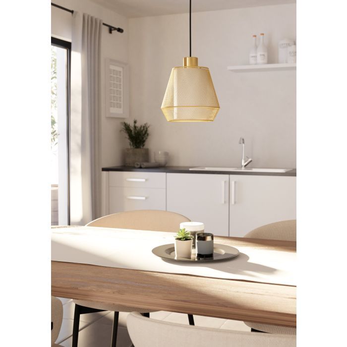 Μονόφωτο κρεμαστό φωτιστικό από την εταιρεία Eglo σε μπεζ χρώμα, με υποδοχή για έναν λαμπτήρα και ντουί E27.