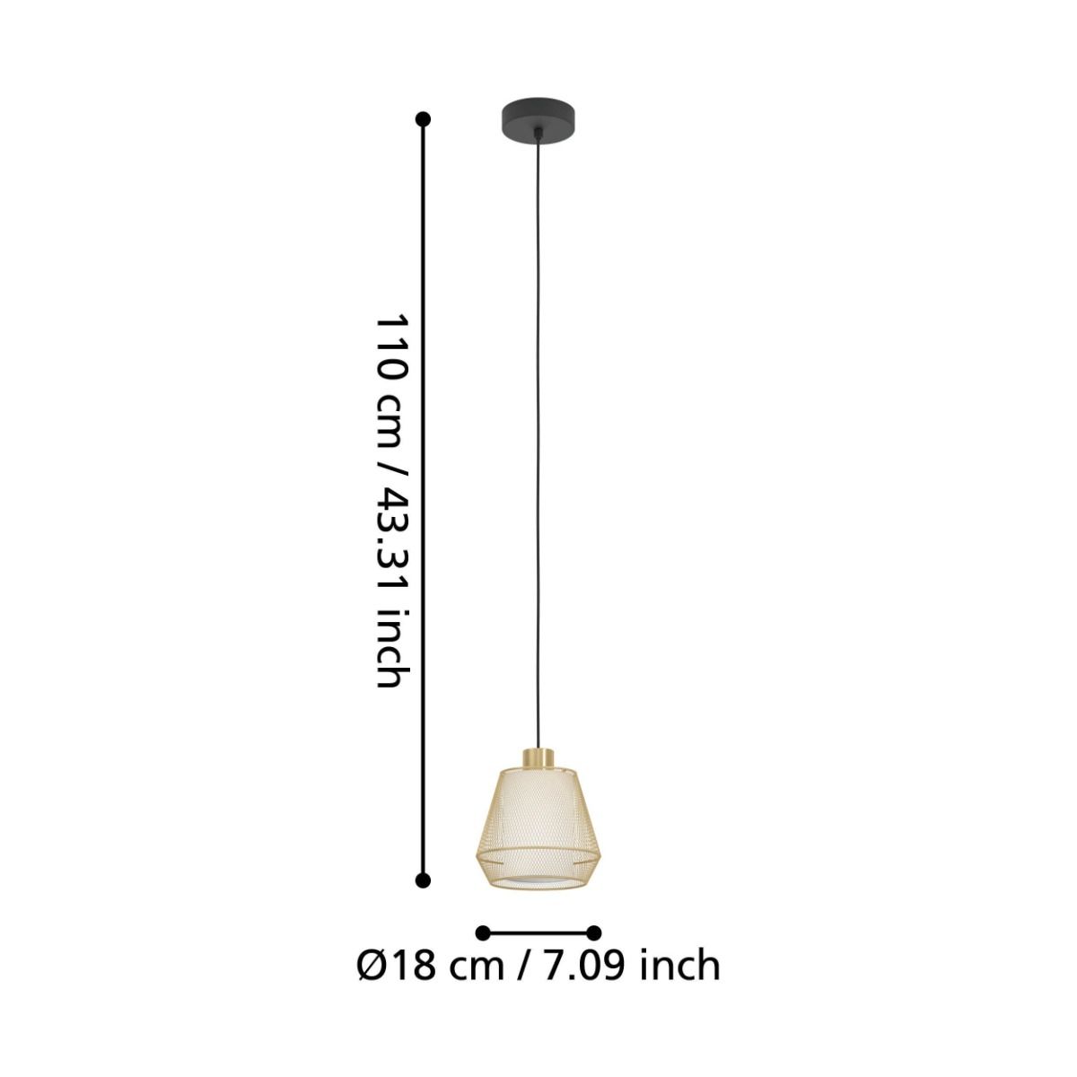 Κρεμαστό Φωτιστικό 18xH110cm Μαύρο-Χρυσαφί Μονόφωτο 1xE27 Eglo Ciudadela 900896