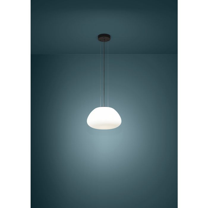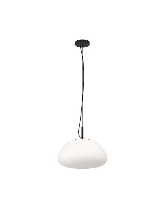 Κρεμαστό Φωτιστικό D41,5xH150cm Μονόφωτο 1xE27 Μέταλλο Μαύρο-Λευκό Οπάλ Γυαλί Eglo Balmes 390201