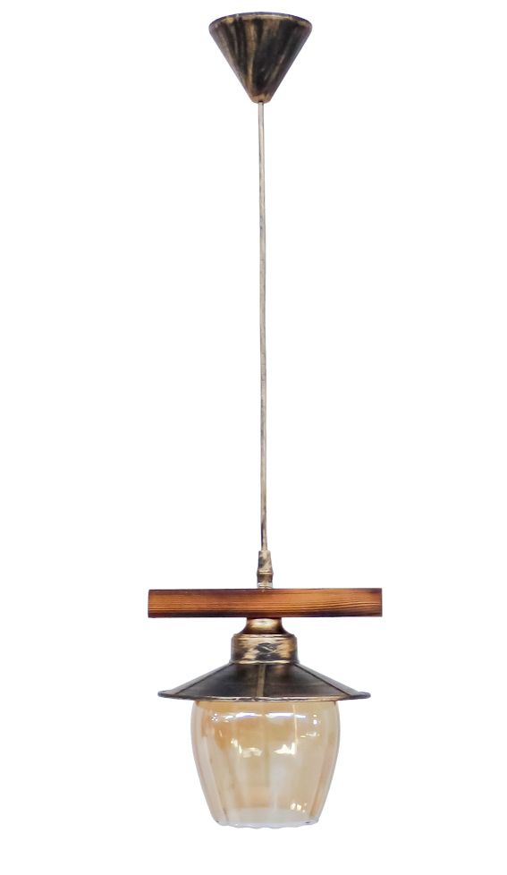 Κρεμαστό φωτιστικό , ξύλινo 1L ,γυαλί μελί σε χρώμα μπρονζέ R-98CABLE 1/L BRONZE