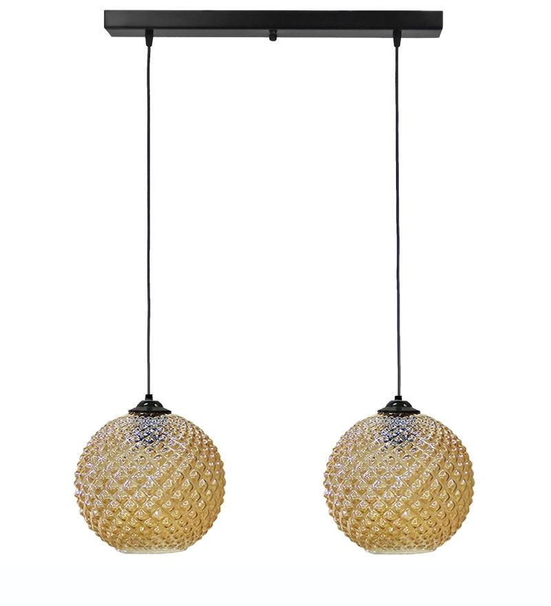 Κρεμαστό φωτιστικό 2φωτο μεταλλικό μαύρο, ράγα ,γυάλινες μπάλες μελί 5010/2 RAGA BL-MELI