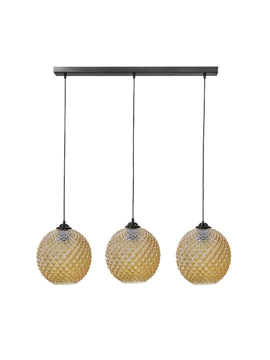 Κρεμαστό φωτιστικό 3φωτο μεταλλικό μαύρο, ράγα ,γυάλινα μελί 5010/3 RAGA BL-MELI