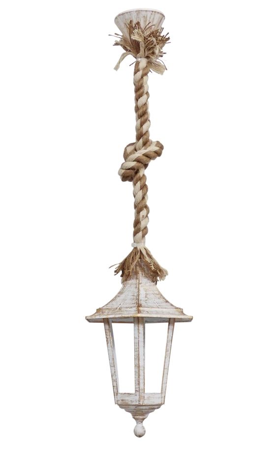 Φωτιστικό κρεμαστό ,οροφής ,πλαστικό με σχοινί 2χρωμο και κόμπο,σε χρώμα λευκό-μπρονζέ LP-400K ROPE MIX WHITE-BRONZE