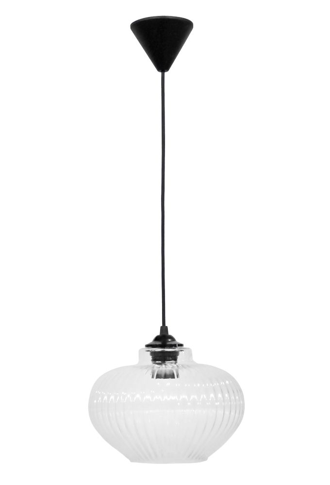 Φωτιστικό κρεμαστό RIGATO/25 TRANSPARANTE 1/L ΚΡΕΜΑΣΤΟ ΓΥΑΛΙΝΟ Τεχνικά χαρακτηριστικά Χρώμα διάφανο με μαύρο καλώδιο γυάλινο με καλώδιο μαύρο Η90 x Φ25 cm E/27 max 10w LED