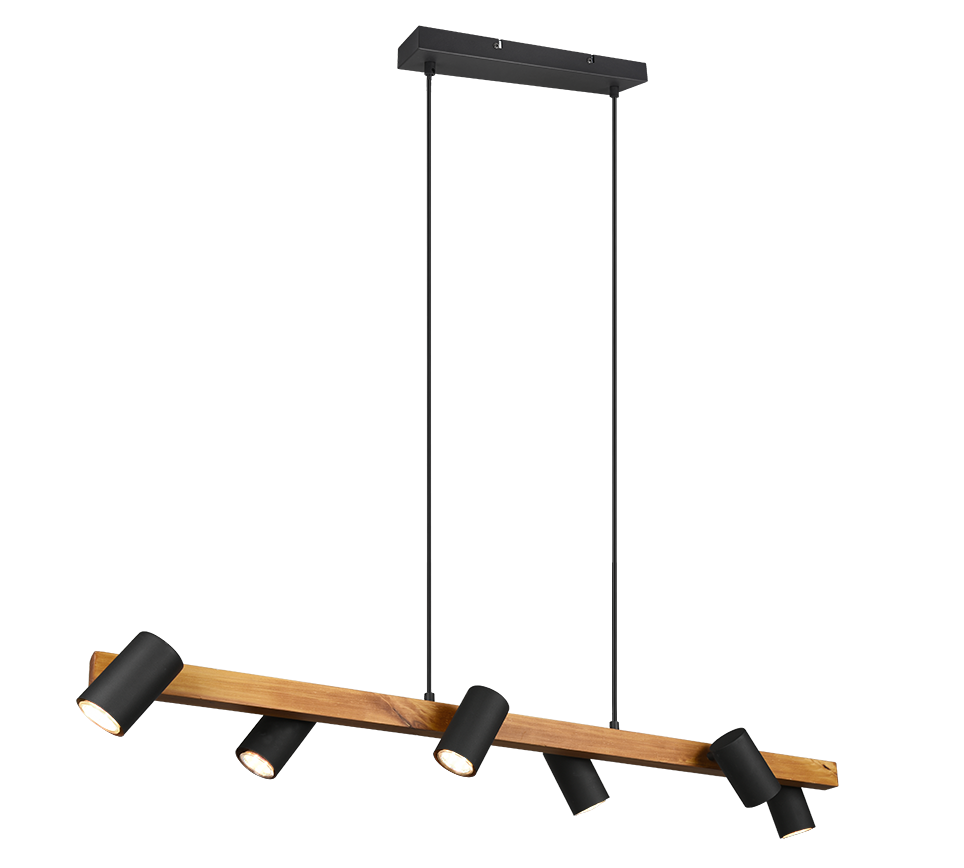 Κρεμαστό Retro Φωτιστικό Ράγα Ξύλο-Μαύρο Ματ 115xH150cm 6xGU10 Trio Lighting Marley 312490632