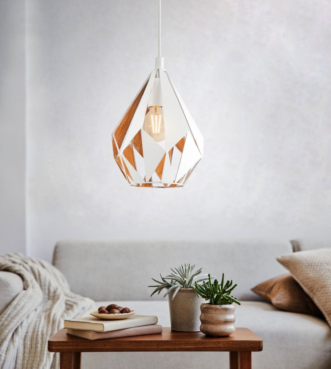 Μονόφωτο κρεμαστό φωτιστικό από την εταιρεία Eglo σε λευκό χρώμα, με υποδοχή για έναν λαμπτήρα και ντουί E27.