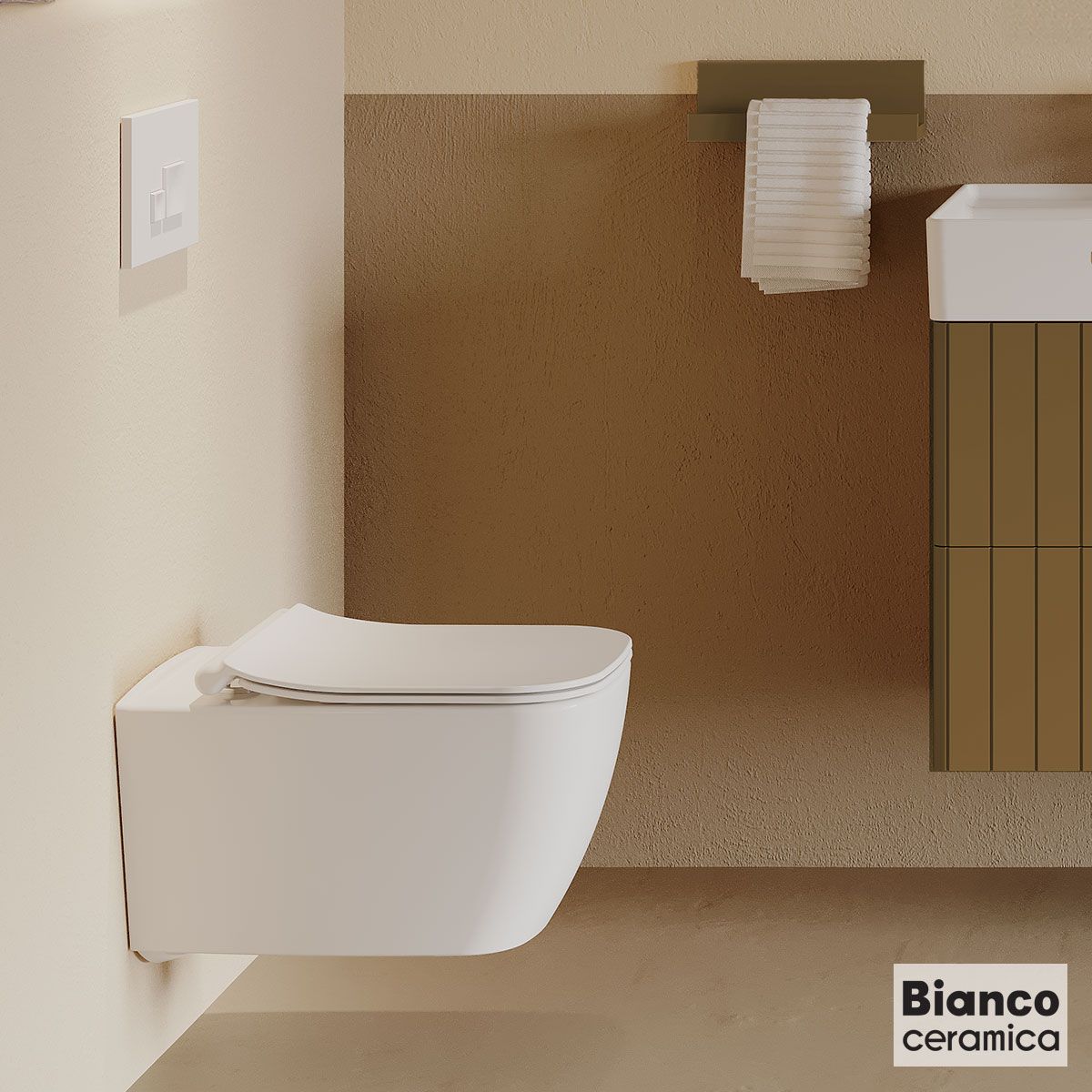 Λεκάνη Κρεμαστή MIZO/51,5 Rimless με κάλυμμα Slim Soft Close MS36SC, Bianco Ceramica White Matt 361600SC-301