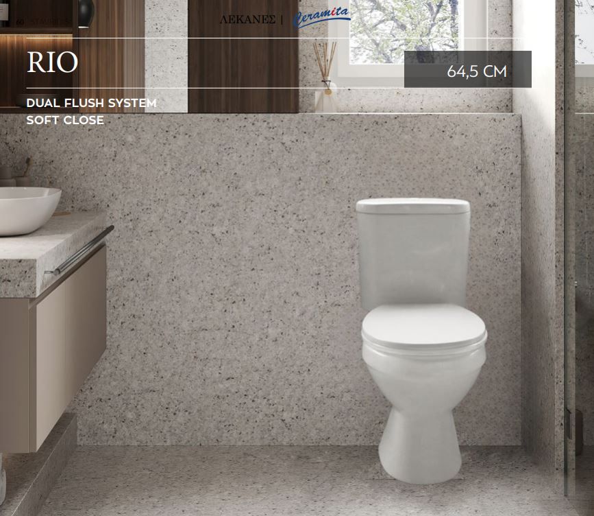 Ceramita Rio S -trap Σετ Λεκάνη Χ.Π Κατωστόμια Κομπλέ με κάλυμμα Soft Close Προβολή 64,5εκ .