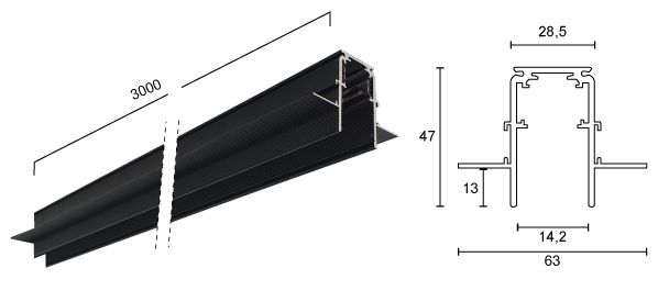 - ✔ Περιγραφή: Μαγνητικό Track Rail Χωνευτό Trimless 3m με Tάπες και Κάλυμμα