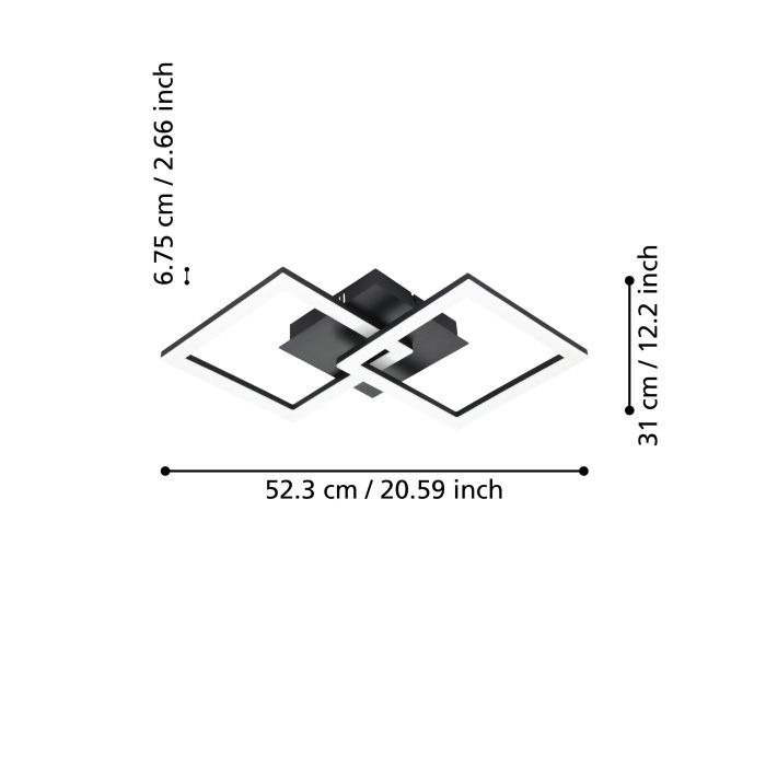 Μοντέρνα πλαφονιέρα οροφής της Eglo σε μαύρο χρώμα, από μέταλλο. Διαθέτει ενσωματωμένο LED.