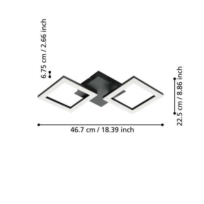 Μοντέρνα πλαφονιέρα οροφής της Eglo σε μαύρο χρώμα, από μέταλλο.
