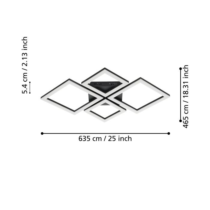 Μοντέρνα πλαφονιέρα οροφής της Eglo σε μαύρο χρώμα, από μέταλλο.