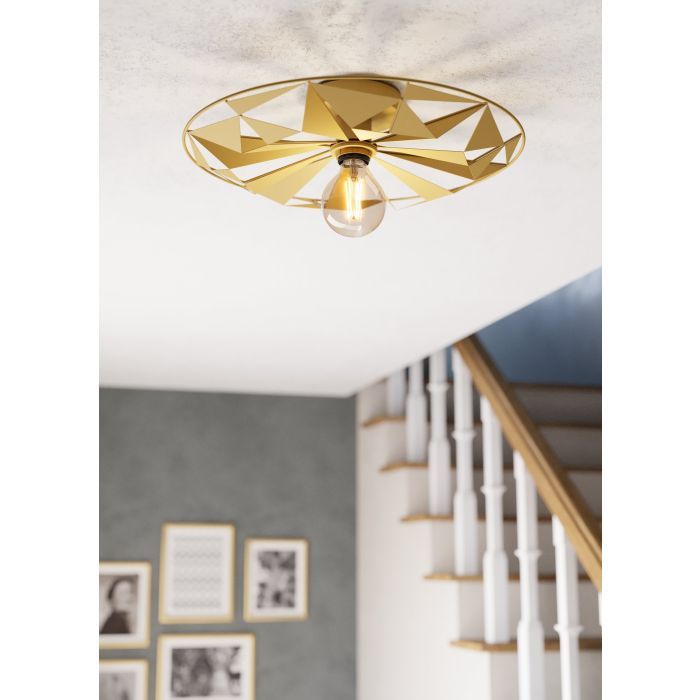Μοντέρνα πλαφονιέρα οροφής της Eglo σε χρυσό χρώμα, από μέταλλο.